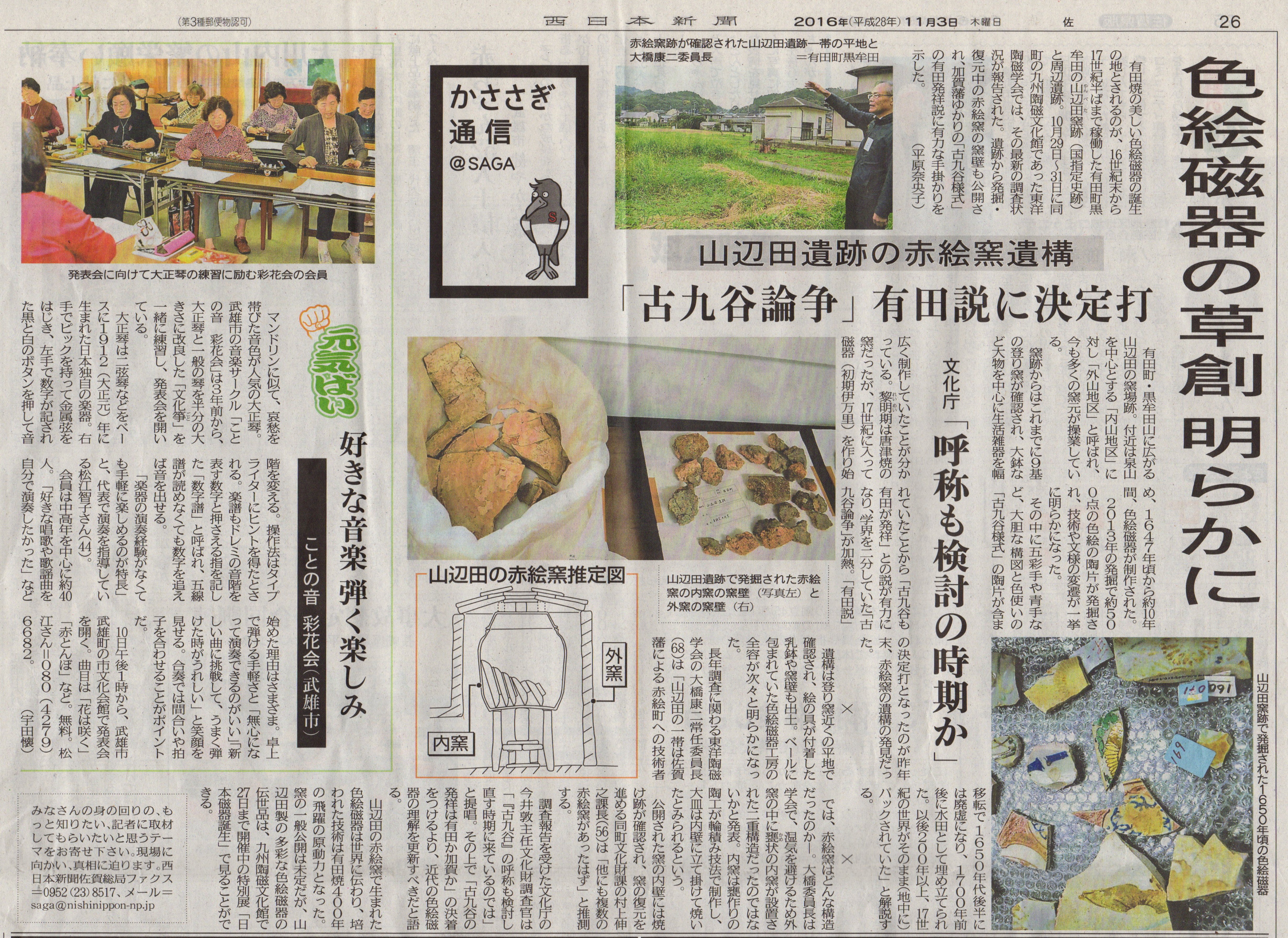 色絵磁器の草創明らかに 西日本新聞 2016年11月3日