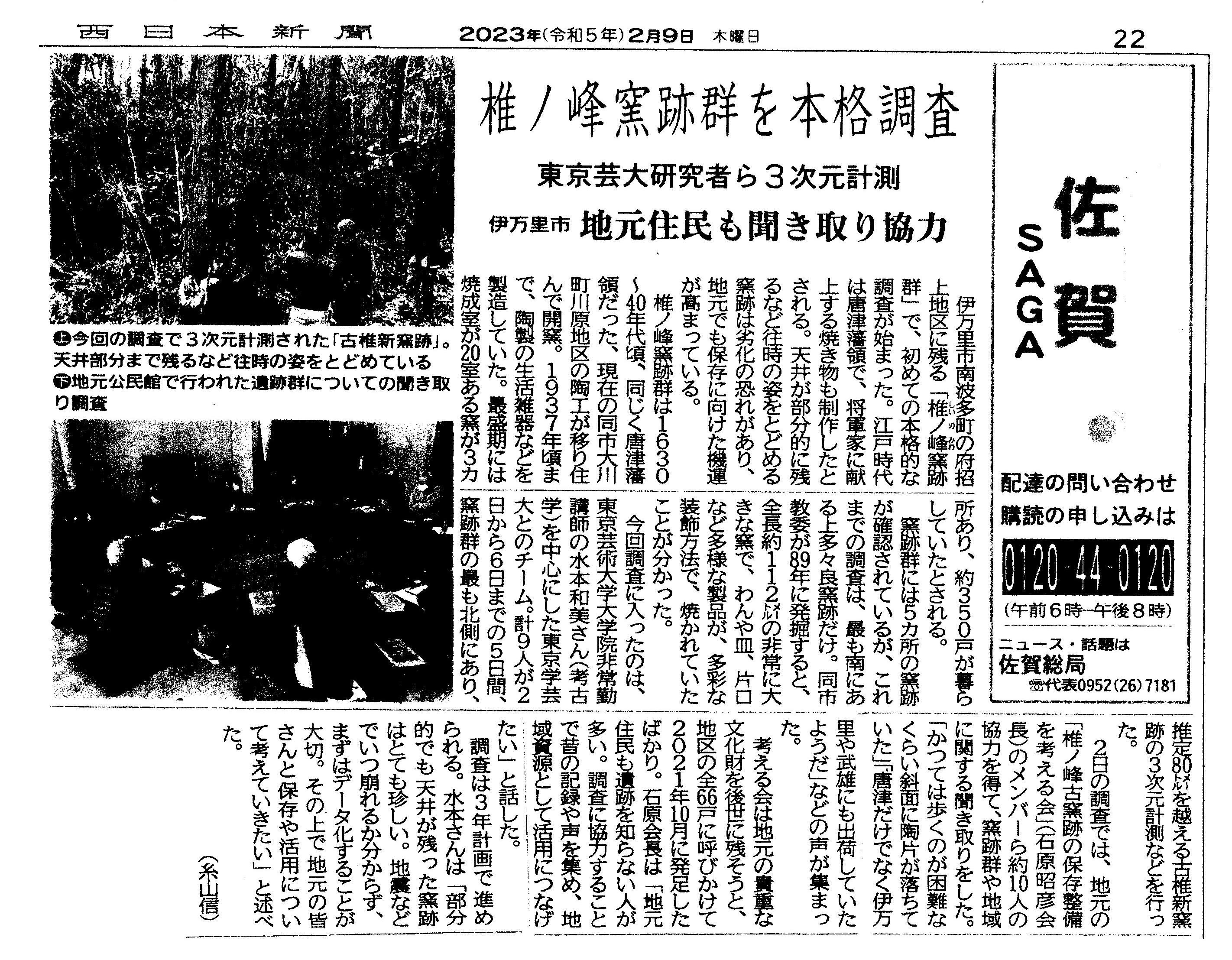 椎ノ峰窯跡群を本格調査 西日本新聞 2023年2月9日