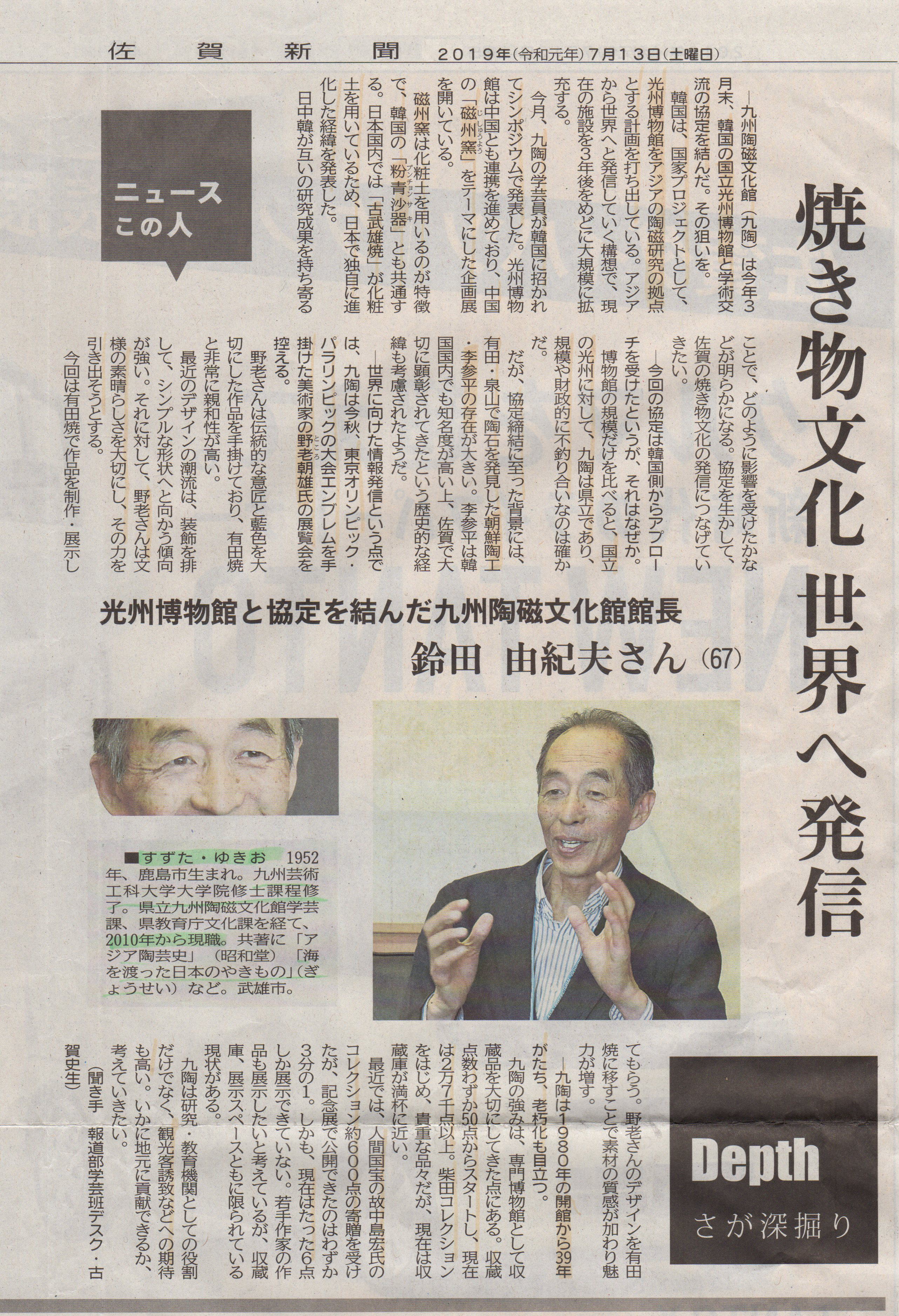 焼き物文化世界へ発信 2019年7月13日 佐賀新聞